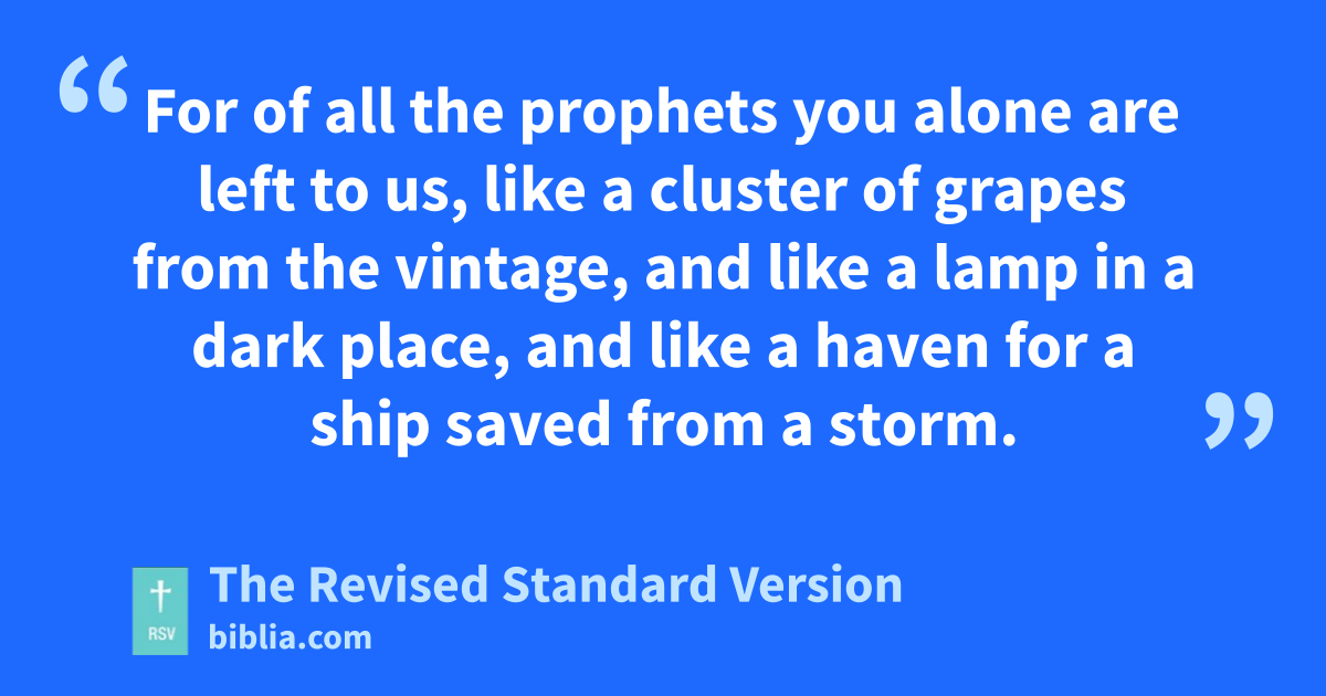 40 When all the people heard that the seven days were past and I had not returned to the city, they all gathered together, from the least to the greatest, and came to me and spoke to me, saying, 41 “How have we offended you, and what harm have we done you, that you have forsaken us and sit in this place? 42 For of all the prophets you alone are left to us, like a cluster of grapes from the vintage, and like a lamp in a dark place, and like a haven for a ship saved from a storm. 43 Are not the evils which have befallen us sufficient? 44 Therefore if you forsake us, how much better it would have been for us if we also had been consumed in the burning of Zion! 45 For we are no better than those who died there.” And they wept with a loud voice.