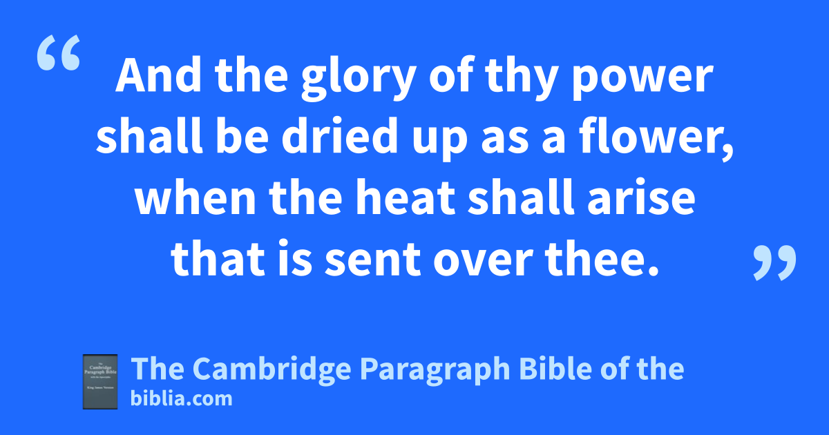 46 And thou, dAsia, that art * partaker of the hope of Babylon, and art the glory of her person: 47 woe be unto thee, thou wretch, because thou hast made thyself like unto her; and hast deckt thy daughters in whoredom, that they might please and glory in thy lovers, which have alway desired to commit whoredom with thee! 48 Thou hast followed her that is hated in all her works and inventions: therefore saith God, 49 eI will send plagues upon thee; widowhood, poverty, famine, sword, and pestilence, to waste thy houses with destruction and death. 50 And the glory of thy power fshall be dried up as a flower, when the heat shall arise that is sent over thee. 51 Thou shalt be weakened as a poor woman with stripes, and as one chastised with wounds, so that the mighty and lovers shall not be able to receive thee. 52 gWould I with jealousy have so proceeded against thee, saith the Lord, 53 if thou hadst not alway slain hmy chosen, exalting the stroke of thine hands, and saying over their * dead, iwhen thou wast drunken, 54 kSet forth the beauty of thy countenance? 55 The reward of thy whoredom shall be lin thy bosom, therefore shalt thou receive recompence. 56 Like as thou hast done unto hmy chosen, saith the Lord, even so shall God do unto thee, and shall deliver thee into mischief. 57 Thy children shall die of hunger, and thou shalt fall through the sword: thy cities shall be broken down, and all thine shall perish with the sword in the field. 58 They that be in the mountains shall die of hunger, and meat their own flesh, and drink their own blood, for very hunger of bread, and thirst of water. 59 Thou, as unhappy shalt come through the sea, and receive plagues again. 60 And in the passage they shall rush on the nidle city, and shall destroy some portion of thy land, and qconsume part of thy glory, and shall return to Babylon that was destroyed. 61 And thou shalt be cast down by them oas stubble, and they shall be unto thee as fire; 62 and shall consume thee, and thy cities, thy land, and thy mountains; all thy woods and thy fruitful trees shall they burn up with fire. 63 Thy children shall they carry away captive, and, look, pwhat thou hast, they shall spoil it, and * qmar the qbeauty of thy face.