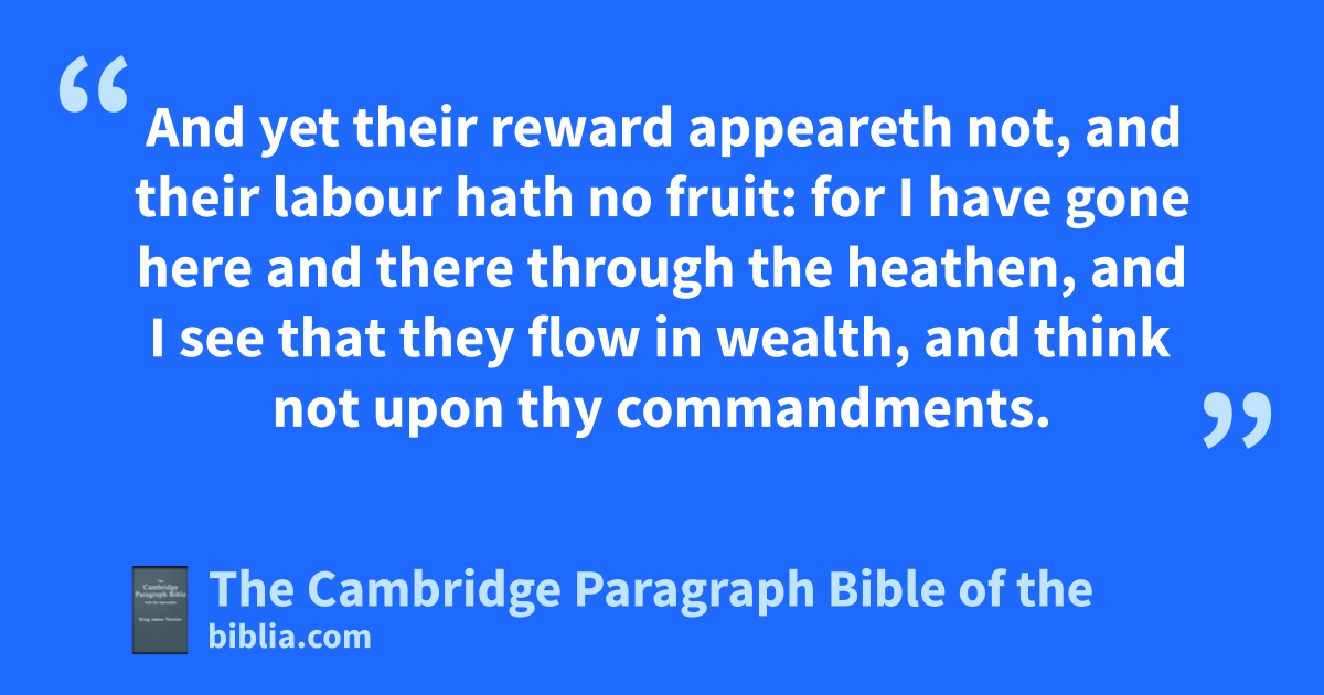4 O Lord, bbwho bearest rule, thou spakest at the beginning, when thou didst plant the earth, and that cthyself alone, and commandedst the people, 5 and dgavest a body unto Adam without soul, which was the workmanship of thine hands, and ddidst breathe into him the breath of life, and he was made living before thee. 6 And ethou leddest him into paradise, which thy right hand had planted, before ever the earth came forward. 7 And unto him thou gavest commandment to love thy way: which he transgressed, and immediately fthou appointedst death in him and in his generations, of whom came nations, tribes, people, and kindreds, out of number. 8 And gevery people walked after their own will, and hdid wonderful things before thee, and despised thy commandments. 9 And again in process of time ithou broughtest the flood upon those that dwelt in the world, and destroyedst them. 10 And it came to pass in every of them, that as death was to Adam, so was the flood to these. 11 Nevertheless one of them thou leftest, namely, kNoah with his household, of whom came all righteous men. 12 And it happened, that when they that dwelt upon the earth began to multiply, and had gotten them many children, and were a great people, they began again to be more ungodly than the first. 13 Now when they lived so wickedly before thee, lthou didst choose thee a man from among them, whose name was mAbraham. 14 nHim thou lovedst, and unto him only thou shewedst thy will: 15 and omadest an everlasting covenant with him, promising him that thou wouldest never forsake his seed. 16 And punto him thou gavest Isaac, and qunto Isaac also thou gavest Jacob and Esau. As for Jacob, rthou didst choose him to thee, and put by Esau: and so sJacob became a great multitude. 17 And it came to pass, that when thou leddest his seed out of Egypt, tthou broughtest them up to the mount Sina. 18 And ubowing the heavens, wthou didst set fast the earth, movedst the whole world, and xmadest the depths to tremble, and ytroubledst the men of that age. 19 And zthy glory went through four gates, of fire, and of earthquake, and of wind, and of cold; that thou mightest give the law unto the seed of Jacob, * and diligence unto the generation of Israel. 20 And yet tookest thou not away from them a wicked heart, that thy law might bring forth fruit in them. 21 For athe first Adam bearing a wicked heart transgressed, and was overcome; and so be all they that are born of him. 22 Thus infirmity was made permanent; and bthe law also in the heart of the people with cthe malignity of the root; bso that the good departed away, and the evil abode still. 23 So the times passed away, and the years were brought to an end: then ddidst thou raise thee up a servant, called David: 24 ewhom thou commandedst to build a city unto thy name, and to offer incense and oblations unto thee therein. 25 When this was done many years, then they that inhabited the city forsook thee, 26 and in all things did even as Adam and all his generations had done: for they also had a wicked heart: 27 and so thou gavest thy city over into the hands of thine enemies. 28 fAre their deeds then any better that inhabit Babylon, that they should therefore have the dominion over Sion? 29 For when I came thither, and had seen impieties without number, then my soul saw many evildoers in gthis thirtieth year, so that hmy heart failed me. 30 For iI have seen how thou sufferest them sinning, and hast spared wicked doers: and hast destroyed thy people, and hast preserved thine enemies, and hast not signified it. 31 I do not * remember how this way may be left: fAre they then of Babylon better than they of Sion? 32 Or is there any other people that knoweth thee besides Israel? or what generation hath so believed thy covenants as Jacob? 33 And yet their reward appeareth not, and their labour hath no fruit: for I have gone here and there through the heathen, and I see that they * flow in wealth, and think not upon thy commandments. 34 Weigh thou therefore our wickedness now in the balance, and theirs also that dwell in the world; and so shall thy name no where be found but in Israel. 35 Or when was it that they which dwell upon the earth have not sinned in thy sight? or what people hath so kept thy commandments? 36 Thou shalt find that Israel by name hath kept thy precepts; but not the heathen.