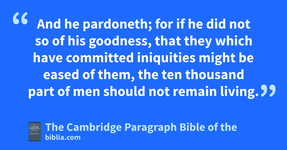 57 Then answered he me, and said, This is the * condition of the battle, which man that is born upon the earth shall fight; 58 that, if he be overcome, he shall suffer sas thou hast said: but if he kget the victory, the shall receive the thing that I say. 59 For this is the life whereof Moses spake unto the people while he lived, saying, uChoose thee life, that thou mayest live. 60 Nevertheless they believed not him, nor yet the prophets after him, no nor me which have spoken unto them, 61 that there should not be such heaviness in their destruction, as wshall be joy over them that are persuaded to salvation. 62 I answered then, and said, I know, Lord, that the most High is called merciful, in that he hath mercy upon them which are not yet come into the world, 63 and upon those also that turn to his law; 64 and that he is xpatient, and long suffereth those that have sinned, as his creatures; 65 and that he is bountiful, for he is ready to give where it needeth; 66 and that he is of great mercy, for he multiplieth more and more mercies to them that are present, and that are past, and also to them which are to come. 67 For if he shall not multiply his mercies, the world would not ycontinue with them that inherit therein. 68 And he pardoneth; zfor if he did not so of his goodness, that they which have committed iniquities might be eased of them, the ten thousand part of men should not yremain living. 69 And being judge, if he should not forgive them that are * cured with his word, and put out the multitude of * contentions, 70 there should be very few left peradventure in an innumerable multitude.