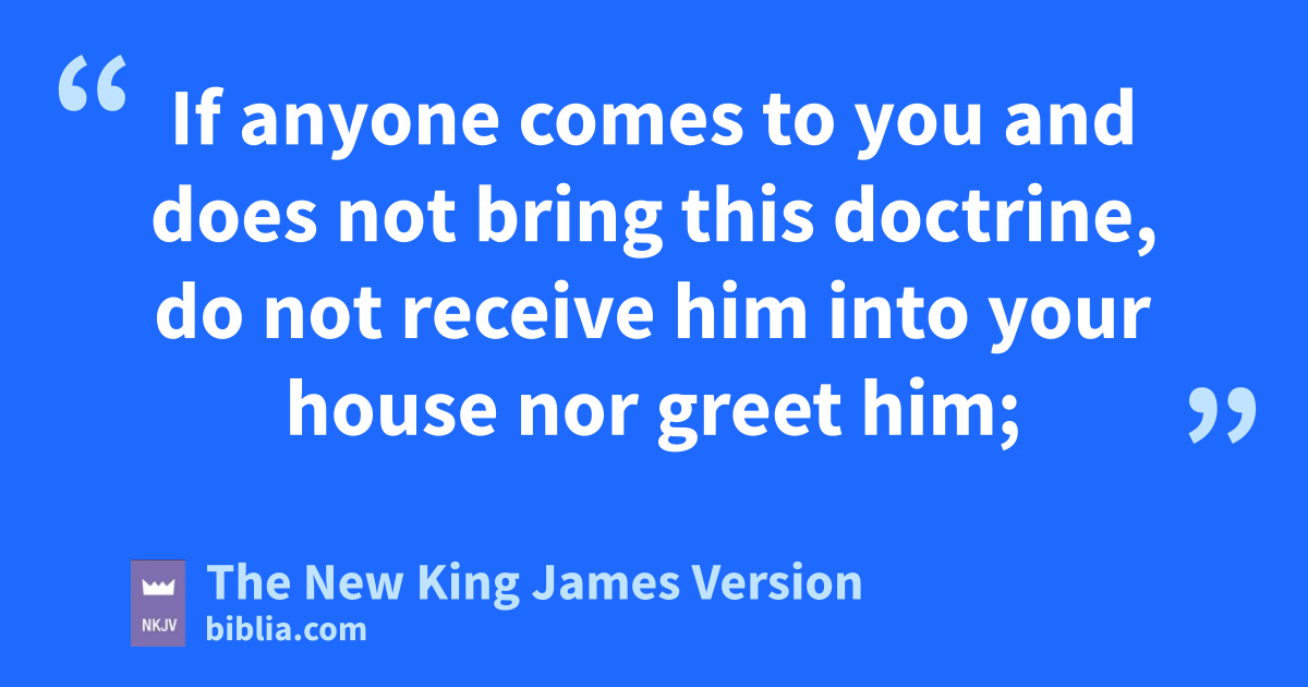 9 lWhoever 4transgresses and does not abide in the doctrine of Christ does not have God. He who abides in the doctrine of Christ has both the Father and the Son. 10 If anyone comes to you and mdoes not bring this doctrine, do not receive him into your house nor greet him; 11 for he who greets him shares in his evil deeds.