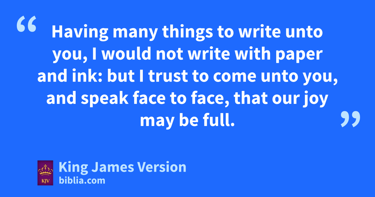 12 xHaving many things to write unto you, I would not write with ypaper and ink: but I trust to come unto you, and speak †face to face, zthat ||our joy may be full. 13 The children of thy belect sister greet thee. Amen.