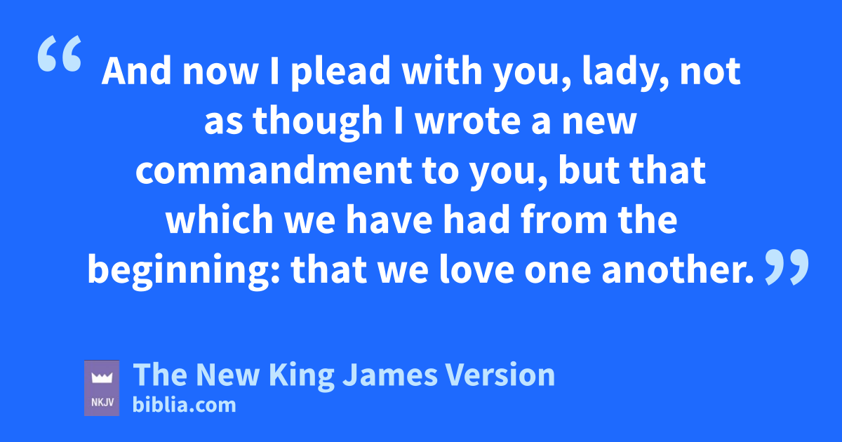 4 I crejoiced greatly that I have found some of your children walking in truth, as we received a commandment from the Father. 5 And now I plead with you, lady, not as though I wrote a new commandment to you, but that which we have had from the beginning: dthat we love one another. 6 eThis is love, that we walk according to His commandments. This is the commandment, that fas you have heard from the beginning, you should walk in it.