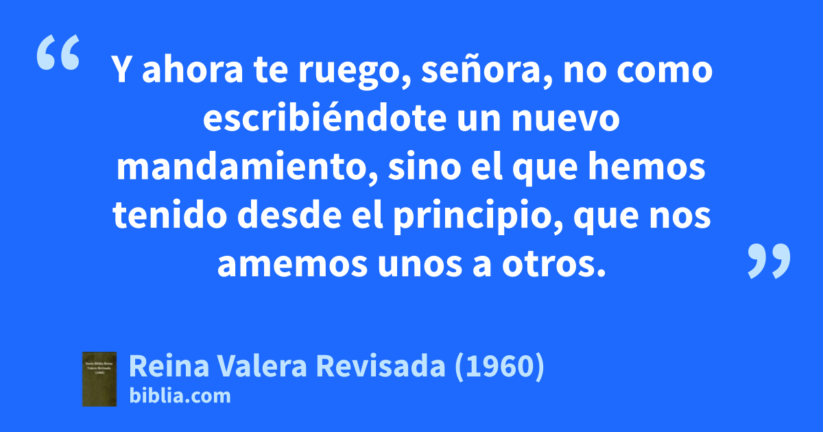 4Mucho me regocijé porque he hallado a algunos de tus hijos andando en la verdad, conforme al mandamiento que recibimos del Padre. 5Y ahora te ruego, señora, no como escribiéndote un nuevo mandamiento, sino el que hemos tenido desde el principio, que nos amemos unos a otros.a 6Y este es el amor, que andemos según sus mandamientos. Este es el mandamiento: que andéis en amor, como vosotros habéis oído desde el principio. 7Porque muchos engañadores han salido por el mundo, que no confiesan que Jesucristo ha venido en carne. Quien esto hace es el engañador y el anticristo. 8Mirad por vosotros mismos, para que no perdáis el fruto de vuestro trabajo, sino que recibáis galardón completo. 9Cualquiera que se extravía, y no persevera en la doctrina de Cristo, no tiene a Dios; el que persevera en la doctrina de Cristo, ése sí tiene al Padre y al Hijo. 10Si alguno viene a vosotros, y no trae esta doctrina, no lo recibáis en casa, ni le digáis: ¡Bienvenido! 11Porque el que le dice: ¡Bienvenido! participa en sus malas obras.