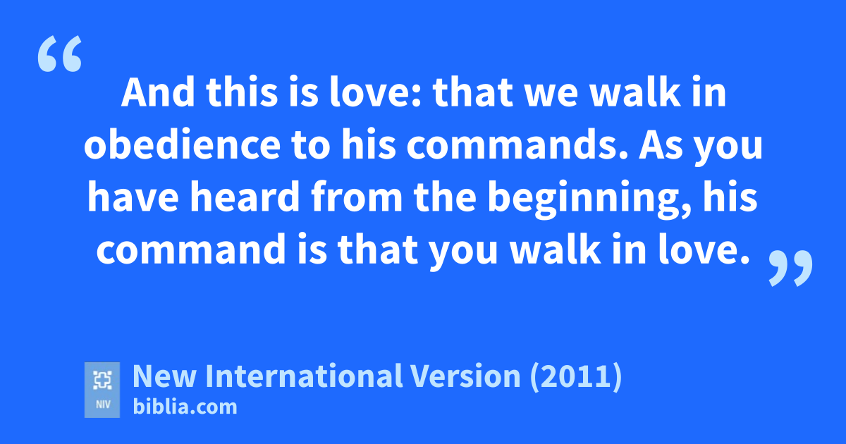4 It has given me great joy to find some of your children walking in the truth,h just as the Father commanded us. 5 And now, dear lady, I am not writing you a new command but one we have had from the beginning.i I ask that we love one another. 6 And this is love:j that we walk in obedience to his commands.k As you have heard from the beginning,l his command is that you walk in love.