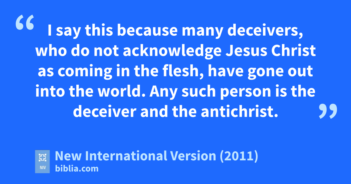 7 I say this because many deceivers, who do not acknowledge Jesus Christm as coming in the flesh,n have gone out into the world.o Any such person is the deceiver and the antichrist.p 8 Watch out that you do not lose what wea have worked for, but that you may be rewarded fully.q 9 Anyone who runs ahead and does not continue in the teaching of Christr does not have God; whoever continues in the teaching has both the Father and the Son.s 10 If anyone comes to you and does not bring this teaching, do not take them into your house or welcome them.t 11 Anyone who welcomes them sharesu in their wicked work.