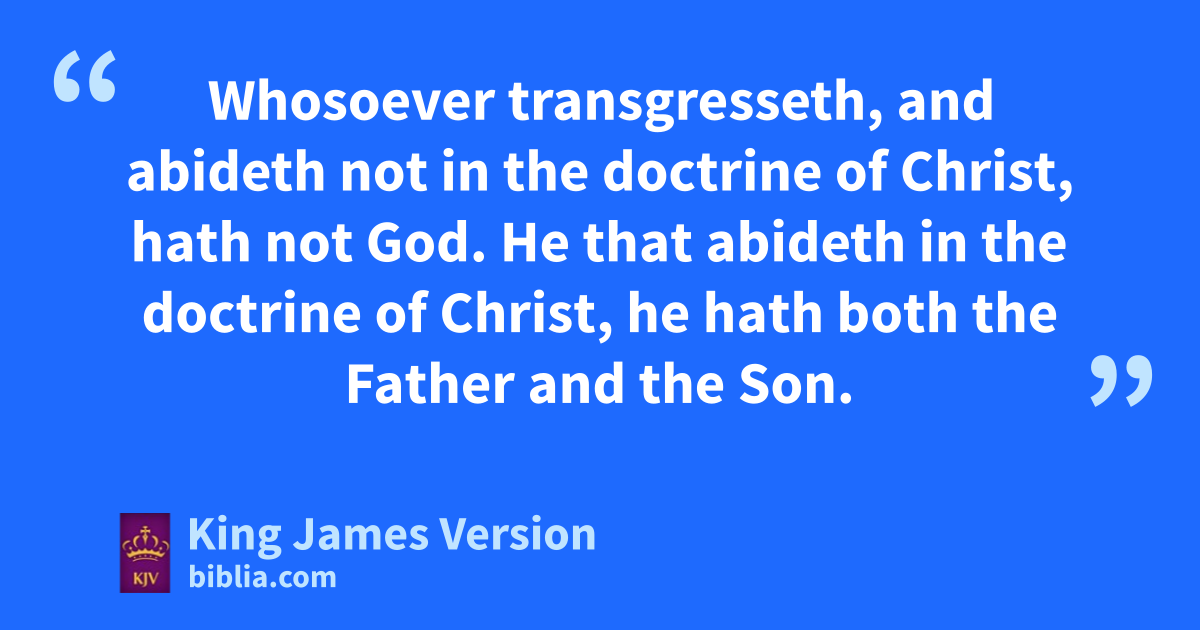 *aThe elder unto bthe elect lady and her children, cwhom I love in the truth; and not I only, but also all they that have dknown ethe truth; 2 ffor the truth’s sake, which dwelleth in us, and shall be with us for ever. 3 ghGrace †be with you, gmercy, and ghpeace, from God the Father, and from the Lord Jesus Christ, the Son of the Father, cin truth and love. 4 I rejoiced greatly that I found of thy children iwalking in truth, as we have received a commandment from the Father. 5 And now I beseech thee, lady, knot as though I wrote a new commandment unto thee, but kthat which we had from the beginning, kthat we love one another. 6 And lthis is love, that we walk after his commandments. This is the commandment, That, mas ye have heard from the beginning, ye should walk in it. 7 For nmany deceivers are entered into the world, owho confess not that Jesus Christ is come in the flesh. oThis is pa deceiver and an nantichrist. 8 qLook to yourselves, rthat we lose not those things which we have ||rrwrought, but that swe receive a full reward. 9 Whosoever ttransgresseth, and abideth not in the doctrine of Christ, uhath not God. He that abideth in the doctrine of Christ, he uhath both the Father and the Son. 10 If there come any unto you, and bring not this doctrine, vreceive him not into your house, vneither bid him God speed: 11 for he that biddeth him God speed wis partaker of his evil deeds.