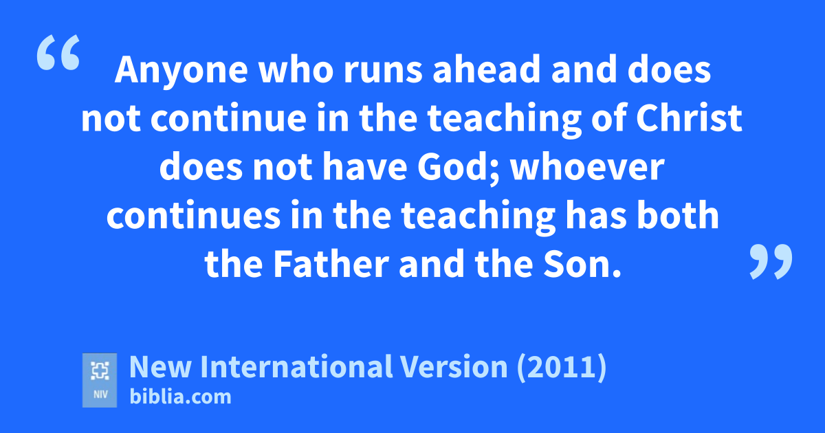 7 I say this because many deceivers, who do not acknowledge Jesus Christm as coming in the flesh,n have gone out into the world.o Any such person is the deceiver and the antichrist.p 8 Watch out that you do not lose what wea have worked for, but that you may be rewarded fully.q 9 Anyone who runs ahead and does not continue in the teaching of Christr does not have God; whoever continues in the teaching has both the Father and the Son.s 10 If anyone comes to you and does not bring this teaching, do not take them into your house or welcome them.t 11 Anyone who welcomes them sharesu in their wicked work.