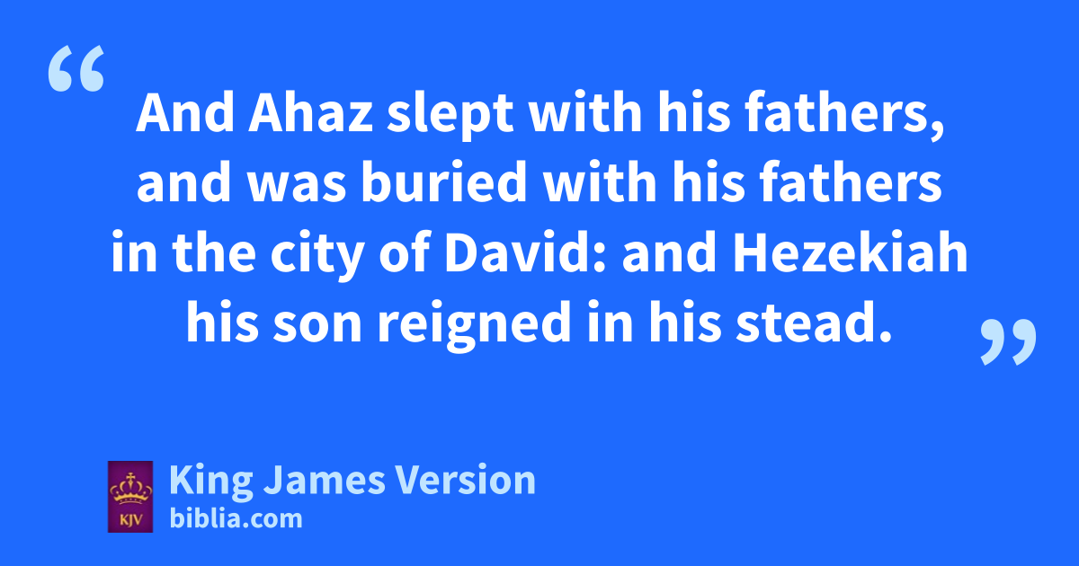 19 tNow the rest of the acts of Ahaz which he did, are they not written in the book of the chronicles of the kings of Judah? 20 *And Ahaz slept with his fathers, and was buried uwith his fathers in the city of David: and Hezekiah his son reigned in his stead.