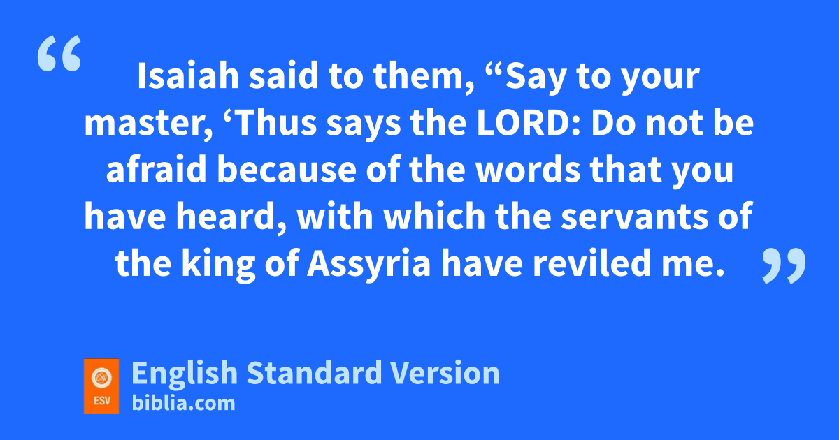 32 “Therefore thus says the Lord concerning the king of Assyria: He shall not come into this city or shoot an arrow there, or come before it with a shield or qcast up a siege mound against it. 33 rBy the way that he came, by the same he shall return, and he shall not come into this city, declares the Lord. 34 sFor I will defend this city to save it, for my own sake tand for the sake of my servant David.”