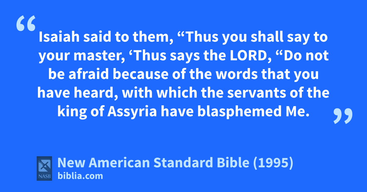 6 Isaiah said to them, “Thus you shall say to your master, ‘Thus says the Lord, “Do not be afraid because of the words that you have heard, with which the aservants of the king of Assyria bhave blasphemed Me.
