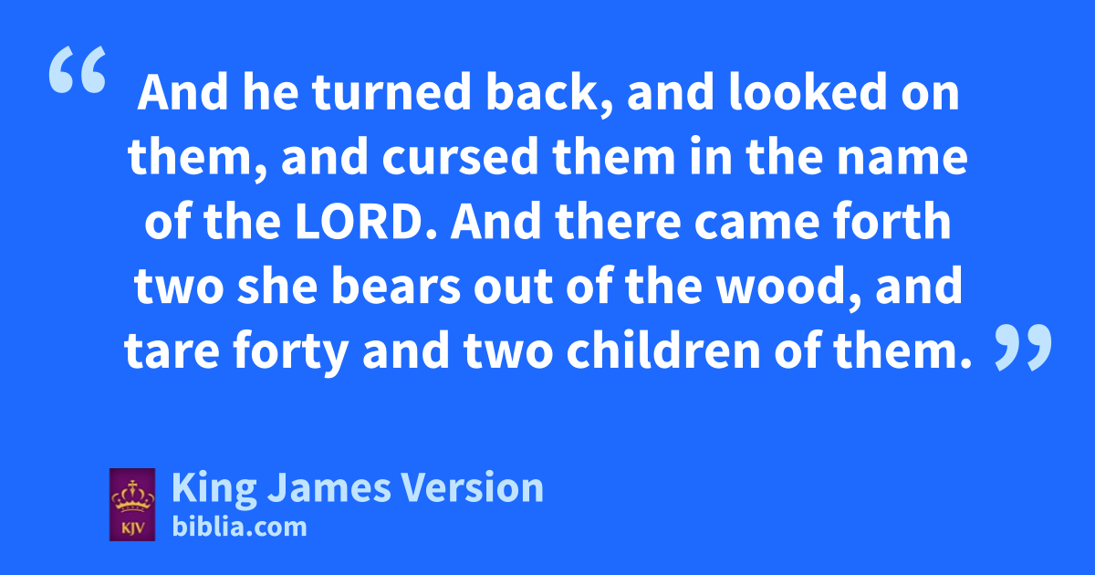 23 And he went up from thence unto Beth-el: and as he was going up by the way, there came forth alittle bchildren out of the city, and mocked him, and said unto him, Go up, thou bald head; go up, thou bald head. 24 And he turned back, and looked on them, and ccursed them in the name of the Lord. And there came forth two she bears out of the wood, and tare forty and two dchildren of them. 25 And he went from thence to mount eCarmel, and from thence he returned to fSamaria.