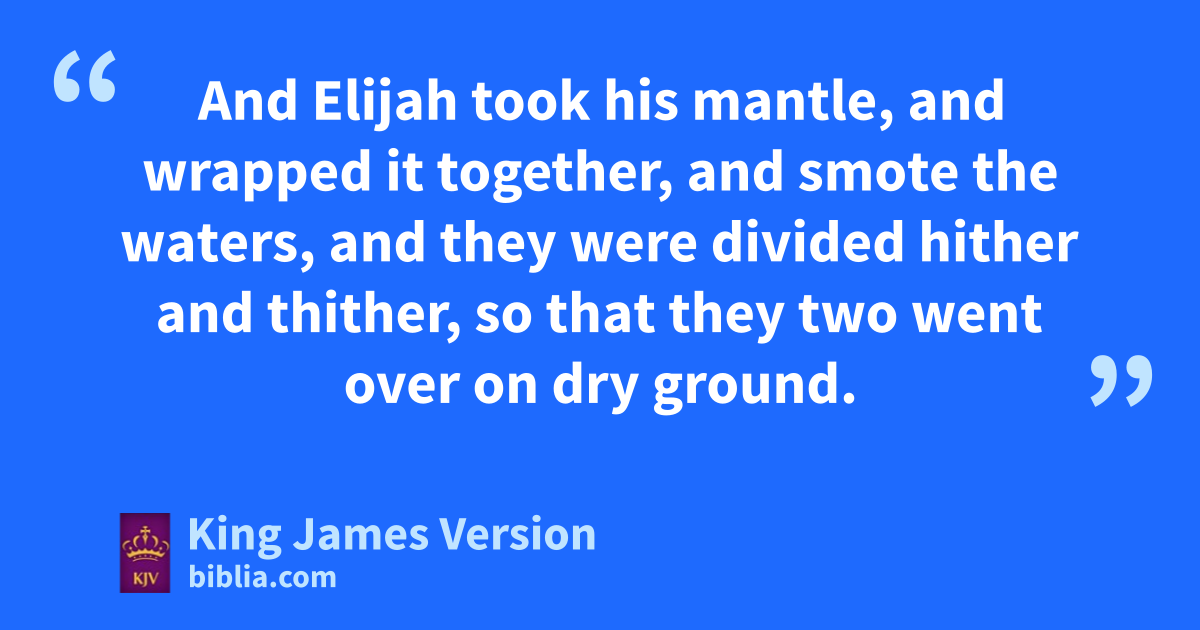 2 And it came to pass, when the Lord would atake up Elijah into heaven by a whirlwind, that Elijah went with bElisha from cGilgal. 2 And Elijah said unto Elisha, dTarry here, I pray thee; for the Lord hath sent me to eBeth-el. And Elisha said unto him, fAs the Lord liveth, and as thy soul liveth, I will not leave thee. So they went down to Beth-el. 3 And gthe sons of the prophets that were at Beth-el came forth to Elisha, and said unto him, Knowest thou that the Lord will take away thy master hfrom thy head to day? And he said, Yea, I know it; hold ye your peace. 4 And Elijah said unto him, Elisha, tarry here, I pray thee; for the Lord hath sent me to iJericho. And he said, fAs the Lord liveth, and as thy soul liveth, I will not leave thee. So they came to Jericho. 5 And the sons of the prophets that were at Jericho came to Elisha, and said unto him, Knowest thou that the Lord will take away thy master hfrom thy head to day? And he answered, Yea, I know it; hold ye your peace. 6 And Elijah said unto him, Tarry, I pray thee, here; for the Lord hath sent me to Jordan. And he said, fAs the Lord liveth, and as thy soul liveth, I will not leave thee. And they two went on. 7 And fifty men of the sons of the prophets went, and stood †to view afar off: and they two stood by Jordan. 8 And Elijah took khis mantle, and wrapped it together, and smote the waters, and mthey were divided hither and thither, so that they two went over on dry ground. 9 And it came to pass, when they were gone over, that Elijah said unto Elisha, Ask what I shall do for thee, before I be taken away from thee. And Elisha said, I pray thee, let na double portion of thy spirit be upon me. 10 And he said, †Thou hast asked a hard thing: nevertheless, if thou see me when I am taken from thee, it shall be so unto thee; but if not, it shall not be so. 11 And it came to pass, as they still went on, and talked, that, behold, there appeared oa chariot of fire, and horses of fire, and parted them both asunder; and pElijah went up by a whirlwind into heaven. 12 And Elisha saw it, and he cried, qMy father, my father, the chariot of Israel, and the horsemen thereof. And he saw him no more: and he took hold of his own clothes, and rrent them in two pieces. 13 He took up also the mantle of Elijah that fell from him, and went back, and stood by the †bank of Jordan; 14 And he took the mantle of Elijah that fell from him, and smote the waters, and said, Where is the Lord God of Elijah? and when he also had smitten the waters, sthey parted hither and thither: and Elisha went over. 15 And when the sons of the prophets which were tto view at Jericho saw him, they said, The spirit of Elijah doth rest on Elisha. And they came to meet him, and bowed themselves to the ground before him. 16 And they said unto him, Behold now, there be with thy servants fifty †strong men; let them go, we pray thee, and seek thy master: lest peradventure uthe Spirit of the Lord hath taken him up, and cast him upon †some mountain, or into some valley. And he said, Ye shall not send. 17 And when they urged him xtill he was ashamed, he said, Send. They sent therefore fifty men; and they sought three days, but found him not. 18 And when they came again to him, (for he tarried at Jericho,) he said unto them, Did I not say unto you, Go not?