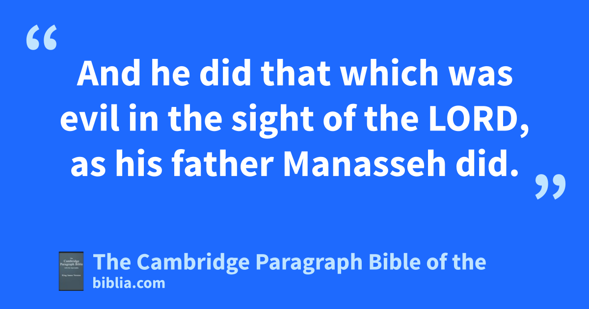 19 * bAmon was twenty and two years old when he began to reign, and he reigned two years in Jerusalem. And his mother’s name was Meshullemeth, the daughter of Haruz of cJotbah. 20 And he did that which was evil in the sight of the Lord, das his father Manasseh did. 21 And he walked in all the way that his father walked in, and served the idols that his father served, and worshipped them: 22 and he eforsook the Lord God of his fathers, and walked not in the way of the Lord. 23 And the servants of Amon conspired against him, and slew the king in his own house. 24 And the people of the land slew all them that had conspired against king Amon; and the people of the land made Josiah his son king in his stead. 25 Now the rest of the acts of Amon which he did, are they not written in the book of the chronicles of the kings of Judah? 26 And he was buried in his sepulchre fin the garden of Uzza: and * Josiah his son reigned in his stead.