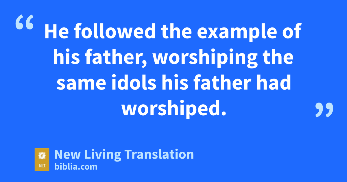 19 Amon was twenty-two years old when he became king, and he reigned in Jerusalem two years. His mother was Meshullemeth, the daughter of Haruz from Jotbah. 20 He did what was evil in the Lord’s sight, just as his father, Manasseh, had done. 21 He followed the example of his father, worshiping the same idols his father had worshiped. 22 He abandoned the Lord, the God of his ancestors, and he refused to follow the Lord’s ways.