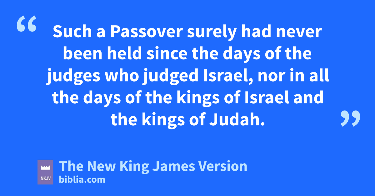 21 Then the king commanded all the people, saying, h“Keep the Passover to the Lord your God, ias it is written in this Book of the Covenant.” 22 jSuch a Passover surely had never been held since the days of the judges who judged Israel, nor in all the days of the kings of Israel and the kings of Judah. 23 But in the eighteenth year of King Josiah this Passover was held before the Lord in Jerusalem. 24 Moreover Josiah put away those who consulted mediums and spiritists, the household gods and idols, all the abominations that were seen in the land of Judah and in Jerusalem, that he might perform the words of kthe law which were written in the book lthat Hilkiah the priest found in the house of the Lord. 25 mNow before him there was no king like him, who turned to the Lord with all his heart, with all his soul, and with all his might, according to all the Law of Moses; nor after him did any arise like him.