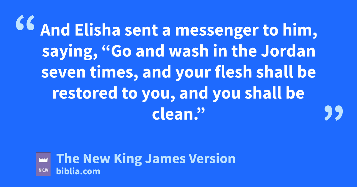 9 Then Naaman went with his horses and chariot, and he stood at the door of Elisha’s house. 10 And Elisha sent a messenger to him, saying, “Go and fwash in the Jordan seven times, and your flesh shall be restored to you, and you shall be clean.” 11 But Naaman became furious, and went away and said, “Indeed, I said to myself, ‘He will surely come out to me, and stand and call on the name of the Lord his God, and wave his hand over the place, and heal the leprosy.’ 12 Are not the 3Abanah and the Pharpar, the rivers of Damascus, better than all the waters of Israel? Could I not wash in them and be clean?” So he turned and went away in a rage. 13 And his gservants came near and spoke to him, and said, “My father, if the prophet had told you to do something great, would you not have done it? How much more then, when he says to you, ‘Wash, and be clean’?” 14 So he went down and dipped seven times in the Jordan, according to the saying of the man of God; and his hflesh was restored like the flesh of a little child, and ihe was clean.