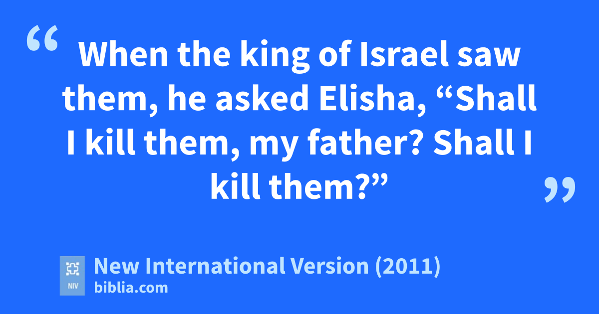 21 When the king of Israel saw them, he asked Elisha, “Shall I kill them, my father?w Shall I kill them?”