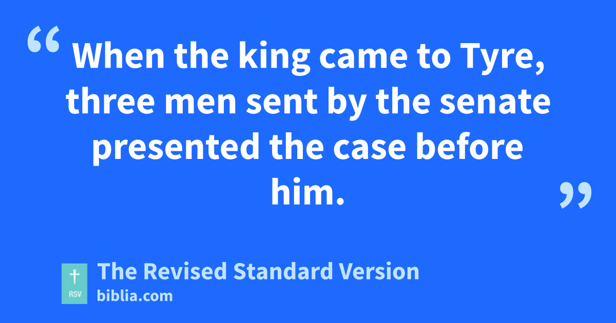43 Charges were brought against Menelaus about this incident. 44 When the king came to Tyre, three men sent by the senate presented the case before him. 45 But Menelaus, already as good as beaten, promised a substantial bribe to Ptolemy son of Dorymenes to win over the king. 46 Therefore Ptolemy, taking the king aside into a colonnade as if for refreshment, induced the king to change his mind. 47 Menelaus, the cause of all the evil, he acquitted of the charges against him, while he sentenced to death those unfortunate men, who would have been freed uncondemned if they had pleaded even before Scythians. 48 And so those who had spoken for the city and the villages and the holy vessels quickly suffered the unjust penalty. 49 Therefore even the Tyrians, showing their hatred of the crime, provided magnificently for their funeral. 50 But Menelaus, because of the cupidity of those in power, remained in office, growing in wickedness, having become the chief plotter against his fellow citizens.