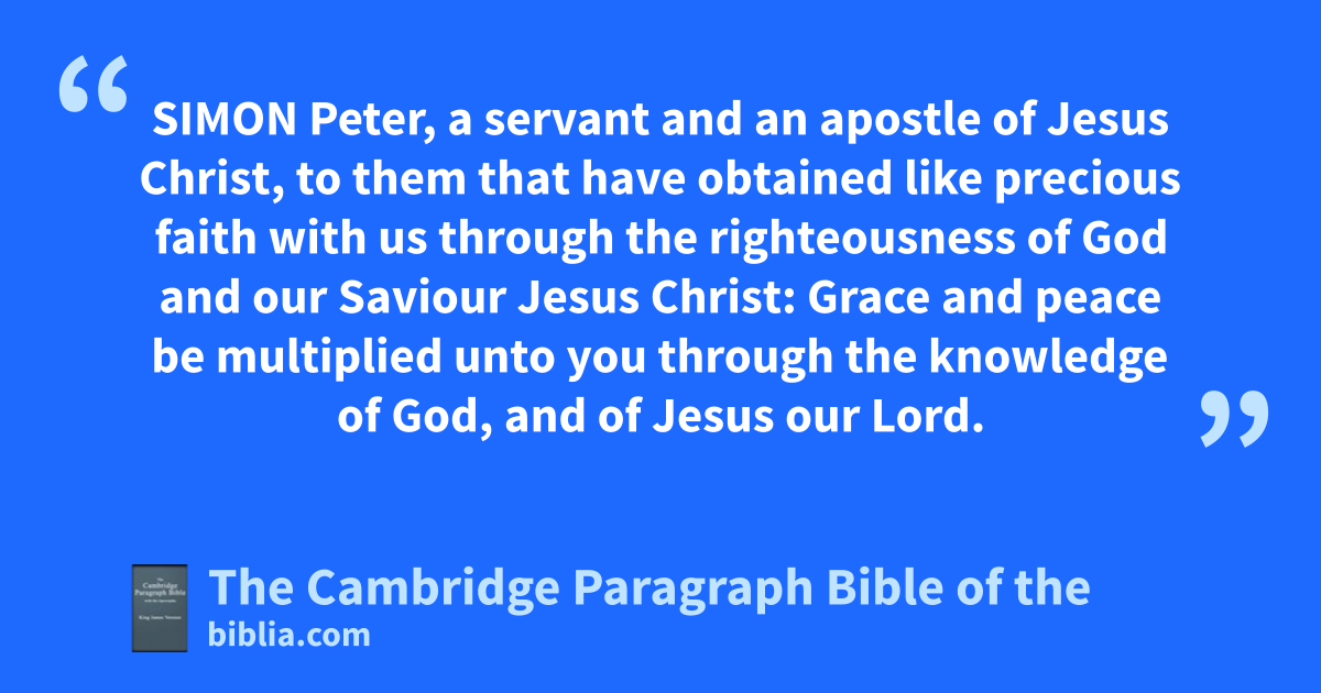 I. * * Simon Peter, aa servant and an apostle of Jesus Christ, to them that have obtained blike precious faith with us cthrough the righteousness * of God and our Saviour Jesus Christ: 2 dGrace and peace be multiplied unto you ethrough the knowledge of God, and of Jesus our Lord.