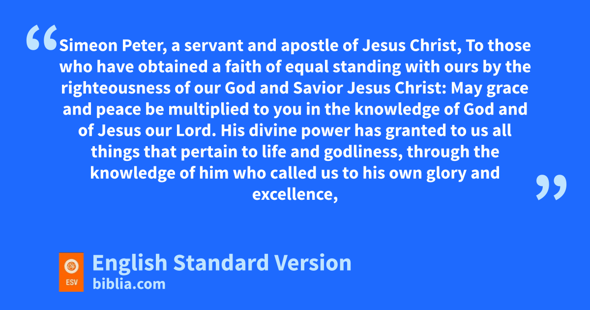 3 His divine power has granted to us all things that pertain to life and godliness, through the knowledge of him fwho called us to3 his own glory and excellence,4 4 by which he has granted to us his precious and very great promises, so that through them you may become gpartakers of the divine nature, hhaving escaped from the corruption that is in the world because of sinful desire. 5 For this very reason, make every effort to supplement your faith iwith virtue,5 and virtue jwith knowledge, 6 and knowledge with self-control, and self-control kwith steadfastness, and steadfastness with godliness, 7 and godliness lwith brotherly affection, and brotherly affection mwith love. 8 For if these qualities6 are yours and are increasing, they keep you from being ineffective or nunfruitful in the knowledge of our Lord Jesus Christ. 9 For whoever lacks these qualities is so nearsighted that he ois blind, having forgotten that he was pcleansed from his former sins. 10 Therefore, brothers,7 be all the more diligent to confirm your calling and qelection, for if you practice these qualities ryou will never fall. 11 For in this way there will be richly provided for you san entrance into the eternal kingdom of our Lord and Savior Jesus Christ.