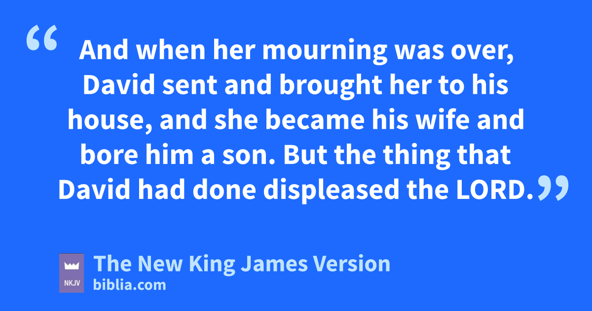 26 When the wife of Uriah heard that Uriah her husband was dead, she mourned for her husband. 27 And when her mourning was over, David sent and brought her to his house, and she sbecame his wife and bore him a son. But the thing that David had done tdispleased 6the Lord.