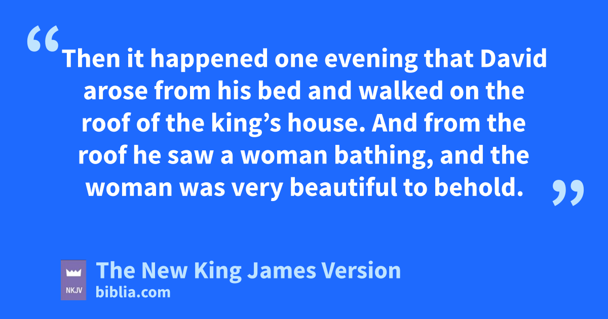 2 Then it happened one evening that David arose from his bed dand walked on the roof of the king’s house. And from the roof he esaw a woman bathing, and the woman was very beautiful to behold. 3 So David sent and inquired about the woman. And someone said, “Is this not 1Bathsheba, the daughter of 2Eliam, the wife fof Uriah the gHittite?” 4 Then David sent messengers, and took her; and she came to him, and hhe lay with her, for she was icleansed from her impurity; and she returned to her house. 5 And the woman conceived; so she sent and told David, and said, “I am with child.”