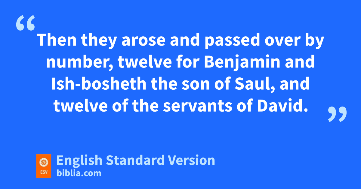 12 Abner the son of Ner, and the servants of Ish-bosheth the son of Saul, went out from Mahanaim to Gibeon. 13 And Joab the son of Zeruiah and the servants of David went out and met them at othe pool of Gibeon. And they sat down, the one on the one side of the pool, and the other on the other side of the pool. 14 And Abner said to Joab, “Let the young men arise and compete before us.” And Joab said, “Let them arise.” 15 Then they arose and passed over by number, twelve for Benjamin and Ish-bosheth the son of Saul, and twelve of the servants of David. 16 And each caught his opponent by the head and thrust his sword in his opponent’s side, so they fell down together. Therefore that place was called Helkath-hazzurim,1 which is at Gibeon. 17 And the battle was very fierce that day. And Abner and the men of Israel were beaten before the servants of David.