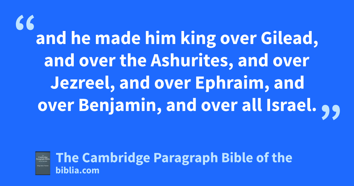 II. And it came to pass after this, that David ainquired of the Lord, saying, Shall I go up into any of the cities of Judah? And the Lord said unto him, Go up. And David said, Whither shall I go up? And he said, Unto bHebron. 2 So David went up thither, and his ctwo wives also, Ahinoam the Jezreelitess, and Abigail Nabal’s wife the Carmelite. 3 And dhis men that were with him did David bring up, every man with his household: and they dwelt in the cities of Hebron. 4 eAnd the men of Judah came, and there they anointed David king over the house of Judah. And they told David, saying, That the men of fJabesh-gilead were they that buried Saul. 5 And David sent messengers unto the men of fJabesh-gilead, and said unto them, gBlessed be ye of the Lord, that ye have shewed this kindness unto your lord, even unto Saul, and have buried him. 6 And now hthe Lord shew kindness and truth unto you: and I also will requite you this kindness, because ye have done this thing. 7 Therefore now let your hands be strengthened, and * be ye valiant: for your master Saul is dead, and also the house of Judah have anointed me king over them. 8 But iAbner the son of Ner, captain of * Saul’s host, took * Ish-bosheth the son of Saul, and brought him over to jMahanaim; 9 and he made him king over kGilead, and over the kAshurites, and over lJezreel, and over kEphraim, and over kBenjamin, and over all Israel. 10 Ish-bosheth Saul’s son was forty years old when he began to reign over Israel, and reigned two years. But the house of Judah followed David. 11 And the * time that David was king in bHebron over the house of Judah was seven years and six months.