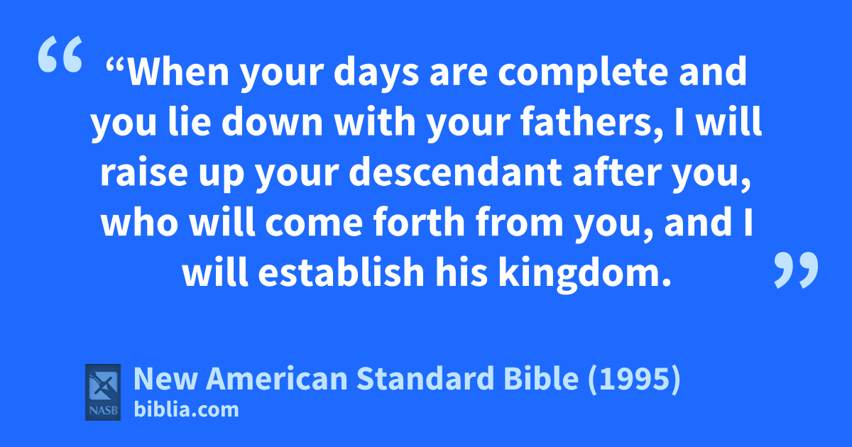 12 “aWhen your days are complete and you blie down with your fathers, cI will raise up your 1descendant after you, who will come forth from 2you, and I will establish his kingdom.