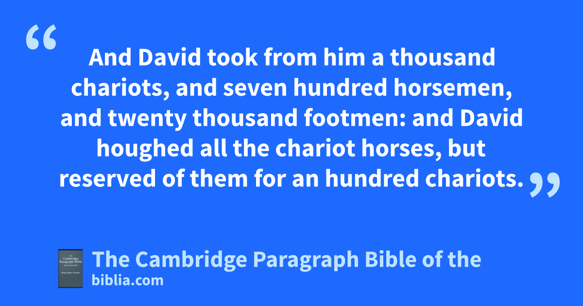 VIII. And aafter this it came to pass, that David smote the Philistines, and subdued them: and David took * Metheg-ammah out of the hand of the Philistines. 2 And bhe smote Moab, and measured them with a line, casting them down to the ground; even with two lines measured he to put to death, and with one full line to keep alive. And so the Moabites cbecame David’s servants, and dbrought gifts. 3 David smote also * Hadadezer, the son of Rehob, king of eZobah, as he went fto recover his border at the river Euphrates. 4 And David took * from him a thousand * chariots, and seven hundred horsemen, and twenty thousand footmen: and David ghoughed all the chariot horses, but reserved of them for an hundred chariots. 5 hAnd when the Syrians of Damascus came to succour Hadadezer king of Zobah, David slew of the Syrians two and twenty thousand men. 6 Then David put igarrisons in Syria of jDamascus: and the Syrians became servants to David, and brought gifts. kAnd the Lord preserved David whithersoever he went. 7 And David took lthe shields of gold that were on the servants of Hadadezer, and brought them to Jerusalem. 8 And from * Betah, and from * Berothai, cities of Hadadezer, king David took exceeding much brass. 9 When * Toi king mof Hamath heard that David had smitten all the host of Hadadezer, 10 then Toi sent * Joram his son unto king David, to * salute him, and to bless him, because he had fought against Hadadezer, and smitten him: for Hadadezer * had wars with Toi. And Joram * brought with him vessels of silver, and vessels of gold, and vessels of brass: 11 which also king David ndid dedicate unto the Lord, with the silver and gold that he had dedicated of all nations which he subdued; 12 of Syria, and of Moab, and oof the children of Ammon, and pof the Philistines, and qof Amalek, and of the spoil of Hadadezer, son of Rehob, king of Zobah. 13 And David gat him a name when he returned from * smiting of the Syrians in rthe valley of salt, s* being eighteen thousand men. 14 And he put igarrisons in Edom; throughout all Edom put he igarrisons, and tall they of Edom became David’s servants. uAnd the Lord preserved David whithersoever he went.