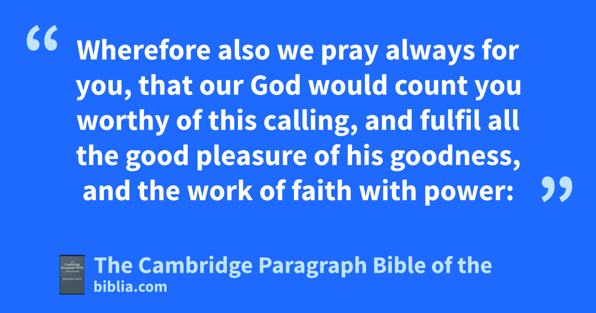 3 bWe are bound to cthank God always for you, brethren, as it is meet, because that your cfaith groweth exceedingly, and the ccharity of every one of you all towards each other aboundeth; 4 dso that we ourselves glory in you in ethe churches of God for your cpatience and cfaith fin all your persecutions and tribulations that ye endure: 5 Which is ga manifest token of the righteous judgment of God, that ye may be hcounted worthy of the kingdom of God, ffor which ye also suffer: 6 iseeing it is a righteous thing with God to recompense tribulation to them that trouble you; 7 and jto you who are troubled krest with us, when lthe Lord Jesus mshall be revealed from heaven nwith * his mighty angels, 8 oin flaming fire, * ptaking vengeance on them qthat know not God, and rthat obey not the gospel of our Lord Jesus Christ: 9 swho shall be punished with everlasting tdestruction ufrom the presence of the Lord, and wfrom the glory of his power; 10 wwhen he shall come xto be glorified in his saints, and to be admired in all them that believe (because our xxtestimony among you ywas believed) zin that day. 11 Wherefore also we pray always for you, that our God would * hcount you worthy of this calling, and fulfil all the agood pleasure of his bgoodness, and cthe work of faith with power: 12 that the name of our Lord Jesus Christ dmay be glorified in you, and ye in him, according to the grace of our God and the Lord Jesus Christ.