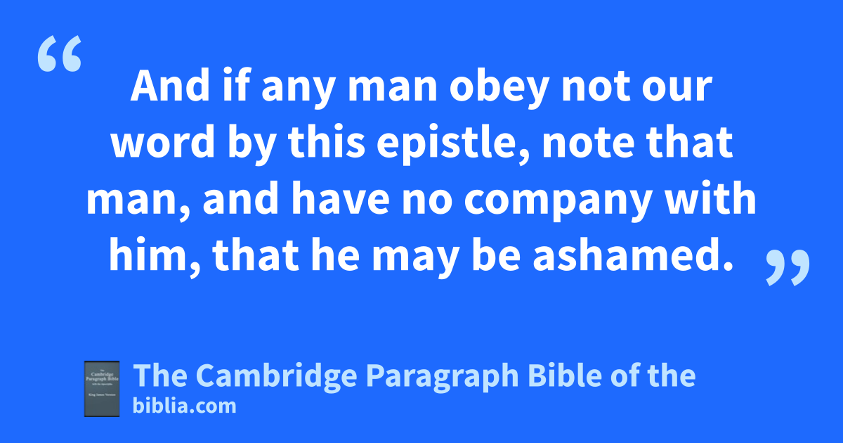 6 Now we command you, brethren, min the name of our Lord Jesus Christ, nthat ye owithdraw yourselves from every pbrother that qwalketh disorderly, and not after rthe tradition which he received of us. 7 For yourselves know how ye ought sto follow us: for twe behaved not ourselves qdisorderly among you; 8 neither did we eat any man’s bread for nought; but uwrought with uulabour and travail unight and day, that we might not be uchargeable to any of you: 9 vnot because we have not power, but to make ourselves wan ensample unto you sto follow us. 10 For even when we were with you, this we commanded you, that xif any would not work, neither should he eat. 11 For we hear that there are some which qwalk among you disorderly, xworking not at all, but are ybusybodies. 12 Now them that are such we command and exhort by our Lord Jesus Christ, xthat with zquietness they work, and eat their own bread. 13 But ye, brethren, * abe not weary in well doing. 14 And if any man obey not our word * by bthis epistle, note that man, and chave no company with him, that dhe may be ashamed. 15 eYet count him not as an enemy, but fadmonish him as a brother. 16 Now gthe Lord of peace himself give you peace always by all means. The Lord be with you all.