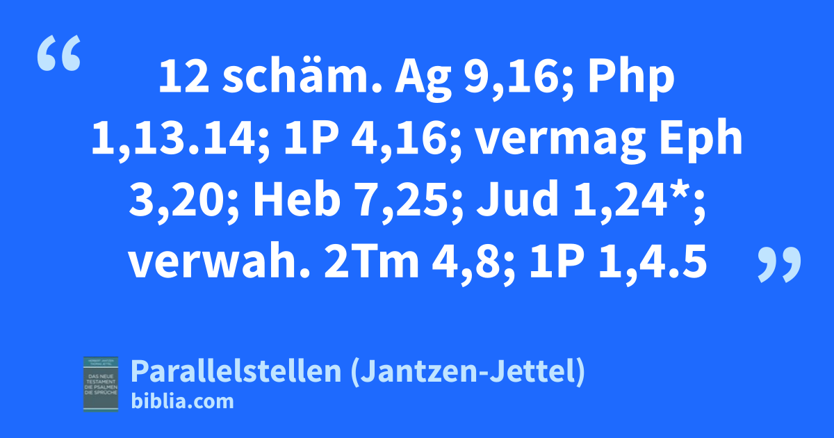 12 schäm. Ag 9,16; Php 1,13.14; 1P 4,16; vermag Eph 3,20; Heb 7,25; Jud 1,24*; verwah. 2Tm 4,8; 1P 1,4.5
