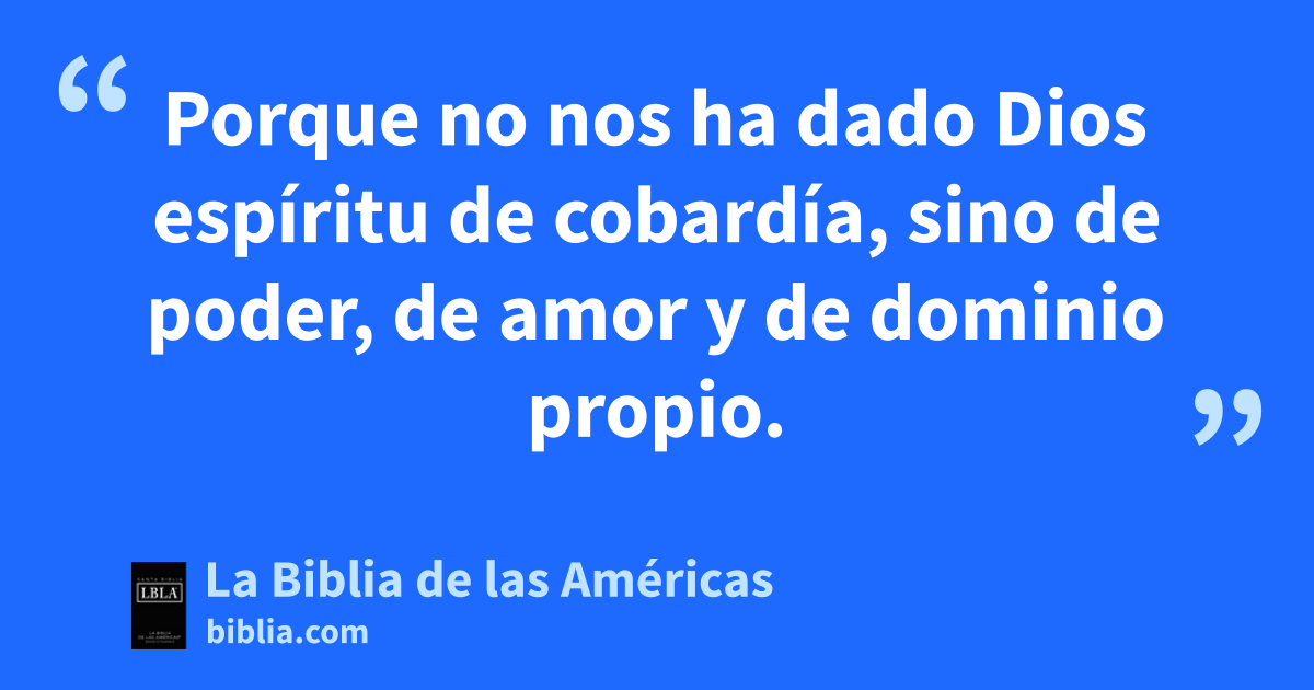 7 Porque no nos ha dado Dios espíritu de cobardíaa, sino de poder, de amor y de dominio propio1.
