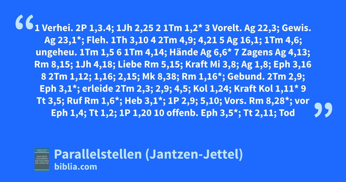 8 2Tm 1,12; 1,16; 2,15; Mk 8,38; Rm 1,16*; Gebund. 2Tm 2,9; Eph 3,1*; erleide 2Tm 2,3; 2,9; 4,5; Kol 1,24; Kraft Kol 1,11*