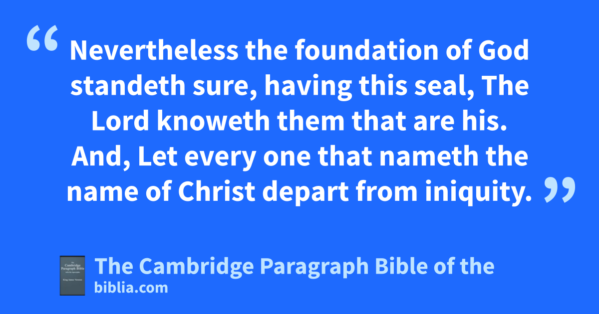 14 Of these things eput them in remembrance, fcharging them before the Lord that they gstrive not about words hto no profit, but to the isubverting of the hearers. 15 Study to shew thyself japproved unto God, a workman that needeth not to be ashamed, rightly dividing the word of truth. 16 But kshun lprofane and vain babblings: for they will mincrease unto more ungodliness. 17 And their word will eat as doth a * canker: of whom is nHymeneus and Philetus; 18 who concerning the truth ohave erred, psaying that the resurrection is past already; and overthrow the faith of some. 19 Nevertheless qthe foundation of God standeth * sure, qqhaving this seal, rThe Lord knoweth them that are his. And, Let every one that nameth the name of Christ sdepart from iniquity. 20 But tin a great house there are not only vessels of gold and of silver, but also of wood and uof earth; and vsome to honour, and some to dishonour. 21 If wa man therefore purge himself from these, he shall be a xvessel unto honour, sanctified, and xmeet for the master’s use, and yprepared unto every zgood work. 22 aFlee also byouthful lusts: but afollow righteousness, afaith, acharity, cpeace, with dthem that call on the Lord eout of a pure heart. 23 But foolish and unlearned fquestions gavoid, knowing that they do gender strifes. 24 And hthe servant of the Lord must not strive; but be igentle unto all men, kapt to teach, * lpatient, 25 min meekness instructing those that oppose themselves; nif God peradventure will give them repentance oto the acknowledging of the truth; 26 and that they may * recover themselves out pof the snare of the devil, who are * taken captive by him at his will.