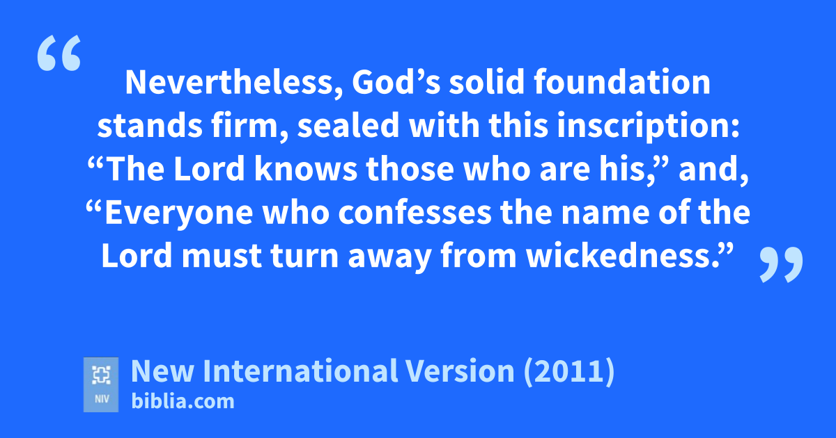 14 Keep reminding God’s people of these things. Warn them before God against quarreling about words;r it is of no value, and only ruins those who listen. 15 Do your best to present yourself to God as one approved, a worker who does not need to be ashamed and who correctly handles the word of truth.s 16 Avoid godless chatter,t because those who indulge in it will become more and more ungodly. 17 Their teaching will spread like gangrene. Among them are Hymenaeusu and Philetus, 18 who have departed from the truth. They say that the resurrection has already taken place,v and they destroy the faith of some.w 19 Nevertheless, God’s solid foundation stands firm,x sealed with this inscription: “The Lord knows those who are his,”y and, “Everyone who confesses the name of the Lordz must turn away from wickedness.”