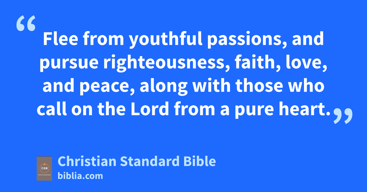 22 Fleen from youthful passions, and pursue righteousness, faith, love, and peace,o along with those who call on the Lordp from a pure heart. 23 But reject foolish and ignorant disputes, because you know that they breed quarrels. 24 The Lord’sq servant must not quarrel,r but must be gentle to everyone, able to teach,I and patient, 25 instructing his opponents with gentleness.s Perhaps God will grant them repentancet leading them to the knowledge of the truth. 26 Then they may come to their senses and escape the trap of the devil,u who has taken them captive to do his will.v