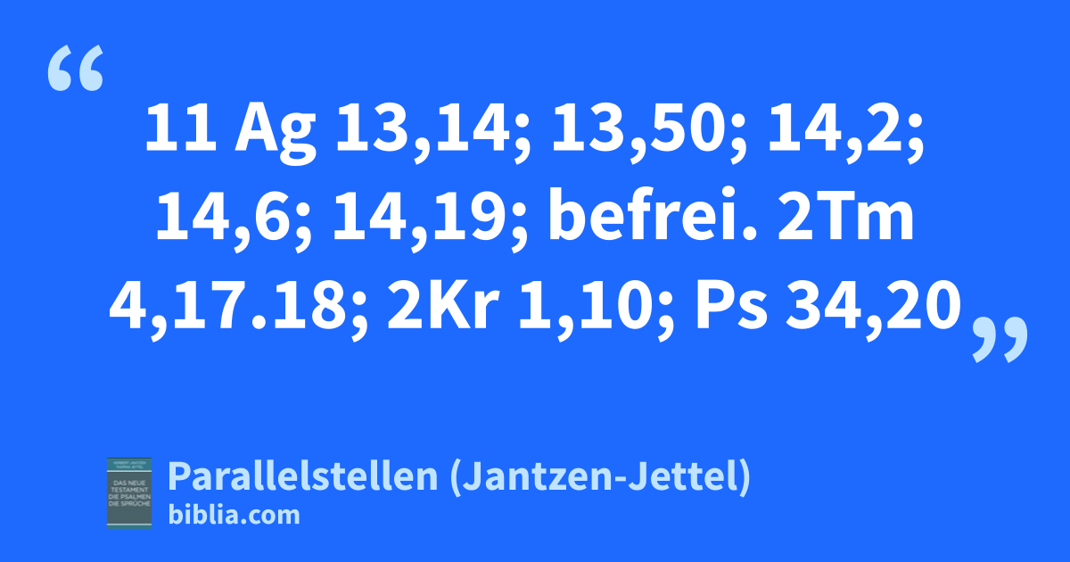 11 Ag 13,14; 13,50; 14,2; 14,6; 14,19; befrei. 2Tm 4,17.18; 2Kr 1,10; Ps 34,20