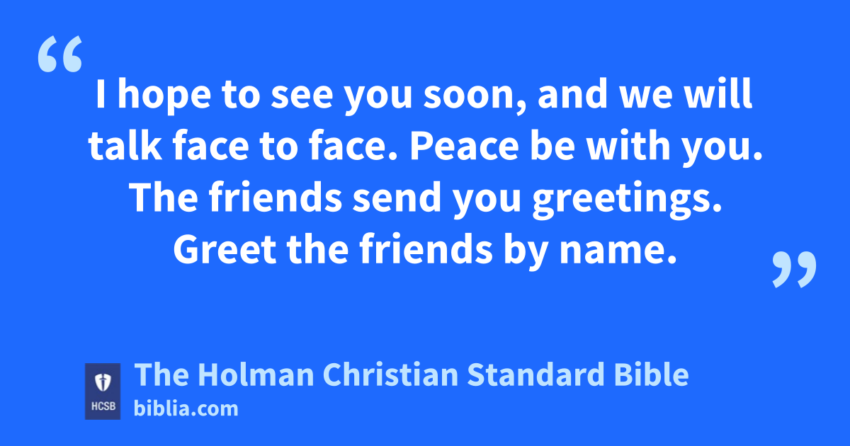 13 I have many things to write you, but I don’t want to write to you with pen and ink. 14 I hope to see you soon, and we will talk face to face. b
