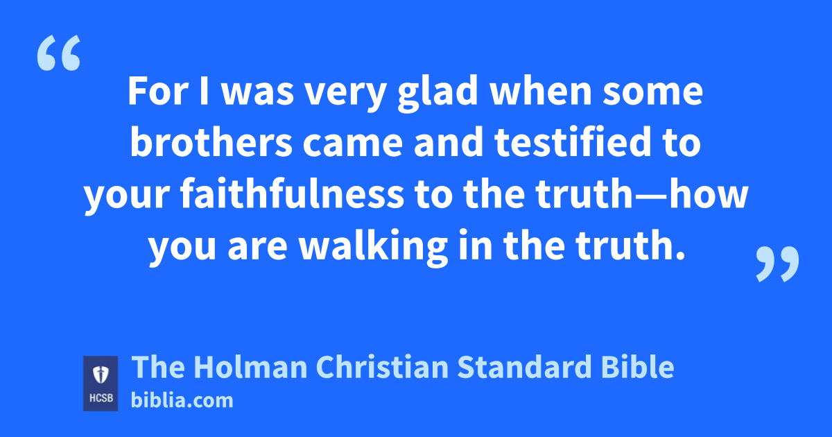 2 Dear friend, d I pray that you may prosper in every way and be in good health physically e just as you are spiritually. f 3 For I was very glad when some * brothers came and testified g to your faithfulness to the truth—how you are * walking in the truth. h 4 I have no greater joy i than this: to hear that my children j are walking in the truth.
