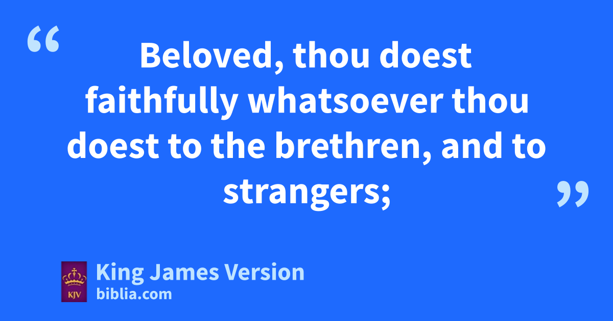 *aThe elder unto the wellbeloved bGaius, awhom I love ||in the truth. 2 Beloved, I ||cwish above all things that thou mayest dprosper and be in health, even as thy soul prospereth. 3 For I erejoiced greatly, when the brethren came and rtestified of the truth that is in thee, even as thou ewalkest in the truth. 4 I have no greater joy than to hear that fmy children ewalk in truth. 5 Beloved, thou doest faithfully whatsoever thou doest to gthe brethren, and to hstrangers; 6 which have rborne witness of thy charity before the church: whom if thou ibring forward on their journey †after a godly sort, kthou shalt do well: 7 because that for his name’s sake they went forth, ltaking nothing of the Gentiles. 8 mWe therefore ought to receive such, that we might be fellowhelpers to the truth.