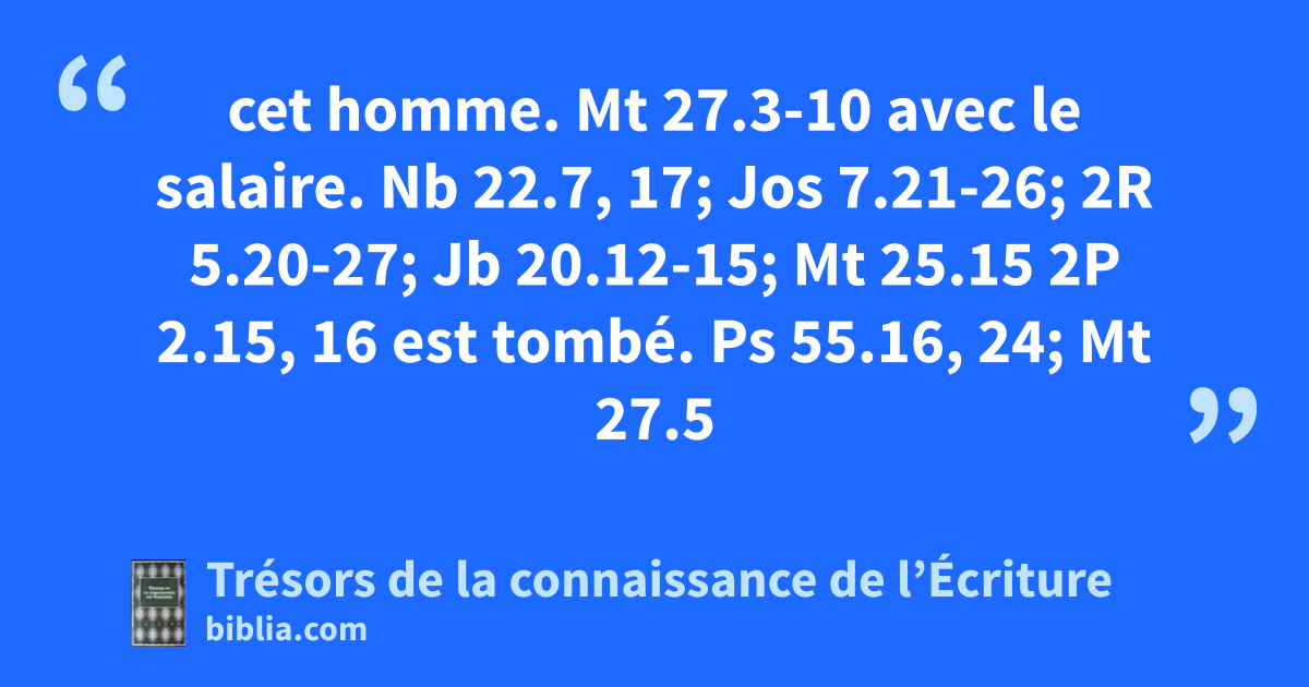 cet homme. Mt 27.3-10 avec le salaire. Nb 22.7, 17; Jos 7.21-26; 2R 5.20-27; Jb 20.12-15; Mt 25.15 2P 2.15, 16 est tombé. Ps 55.16, 24; Mt 27.5