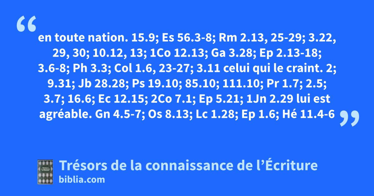 en toute nation. 15.9; Es 56.3-8; Rm 2.13, 25-29; 3.22, 29, 30; 10.12, 13; 1Co 12.13; Ga 3.28; Ep 2.13-18; 3.6-8; Ph 3.3; Col 1.6, 23-27; 3.11 celui qui le craint. 2; 9.31; Jb 28.28; Ps 19.10; 85.10; 111.10; Pr 1.7; 2.5; 3.7; 16.6; Ec 12.15; 2Co 7.1; Ep 5.21; 1Jn 2.29 lui est agréable. Gn 4.5-7; Os 8.13; Lc 1.28; Ep 1.6; Hé 11.4-6