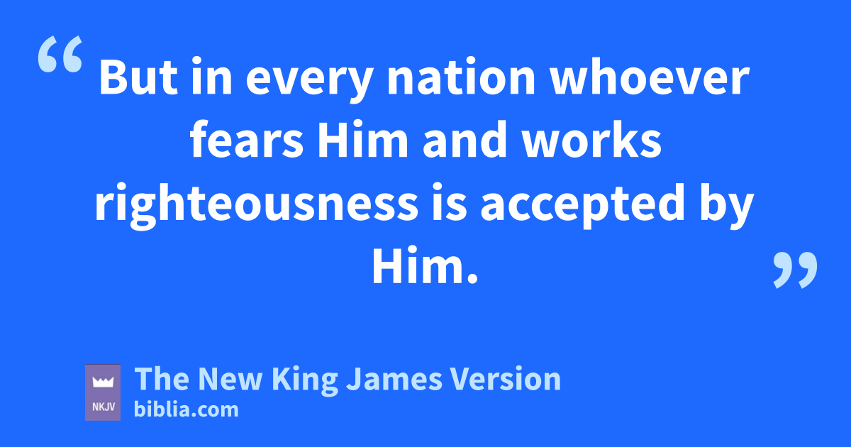 34 Then Peter opened his mouth and said: w“In truth I perceive that God shows no partiality. 35 But xin every nation whoever fears Him and works righteousness is yaccepted by Him. 36 The word which God sent to the 3children of Israel, zpreaching peace through Jesus Christ—aHe is Lord of all—37 that word you know, which was proclaimed throughout all Judea, and bbegan from Galilee after the baptism which John preached: 38 how cGod anointed Jesus of Nazareth with the Holy Spirit and with power, who dwent about doing good and healing all who were oppressed by the devil, efor God was with Him. 39 And we are fwitnesses of all things which He did both in the land of the Jews and in Jerusalem, whom 4they gkilled by hanging on a tree. 40 Him hGod raised up on the third day, and showed Him openly, 41 inot to all the people, but to witnesses chosen before by God, even to us jwho ate and drank with Him after He arose from the dead. 42 And kHe commanded us to preach to the people, and to testify lthat it is He who was ordained by God to be Judge mof the living and the dead. 43 nTo Him all the prophets witness that, through His name, owhoever believes in Him will receive premission 5of sins.”