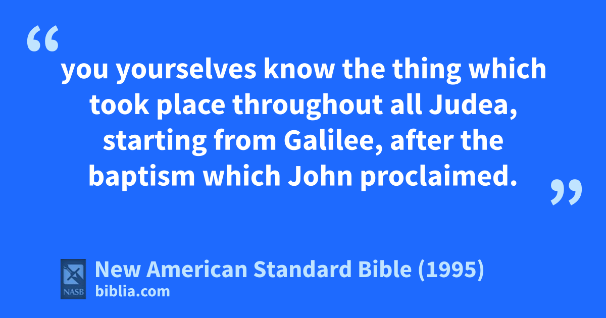 37 you yourselves know the thing which took place throughout all Judea, starting from Galilee, after the baptism which John proclaimed.