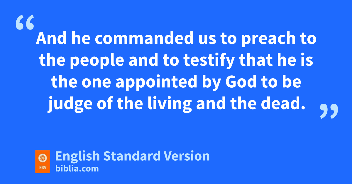 34 So Peter opened his mouth and said: “Truly I understand that fGod gshows no partiality, 35 but fin every nation anyone who fears him and hdoes what is right is acceptable to him. 36 As for ithe word that he sent to Israel, jpreaching good news of kpeace through Jesus Christ (lhe is Lord of all), 37 you yourselves know what happened throughout all Judea, mbeginning nfrom Galilee after the baptism that John proclaimed: 38 how oGod anointed Jesus of Nazareth pwith the Holy Spirit and with qpower. He went about doing good and healing all rwho were oppressed by the devil, sfor God was with him. 39 And twe are witnesses of all that he did both in the country of the Jews and in Jerusalem. uThey put him to death by hanging him on a tree, 40 but vGod raised him on wthe third day and made him to xappear, 41 ynot to all the people but to us who had been chosen by God as zwitnesses, who ate and drank with him after he rose from the dead. 42 And ahe commanded us to preach to the people and to testify bthat he is the one appointed by God to be judge cof the living and the dead. 43 dTo him eall the prophets bear witness that feveryone who believes in him receives gforgiveness of sins hthrough his name.”