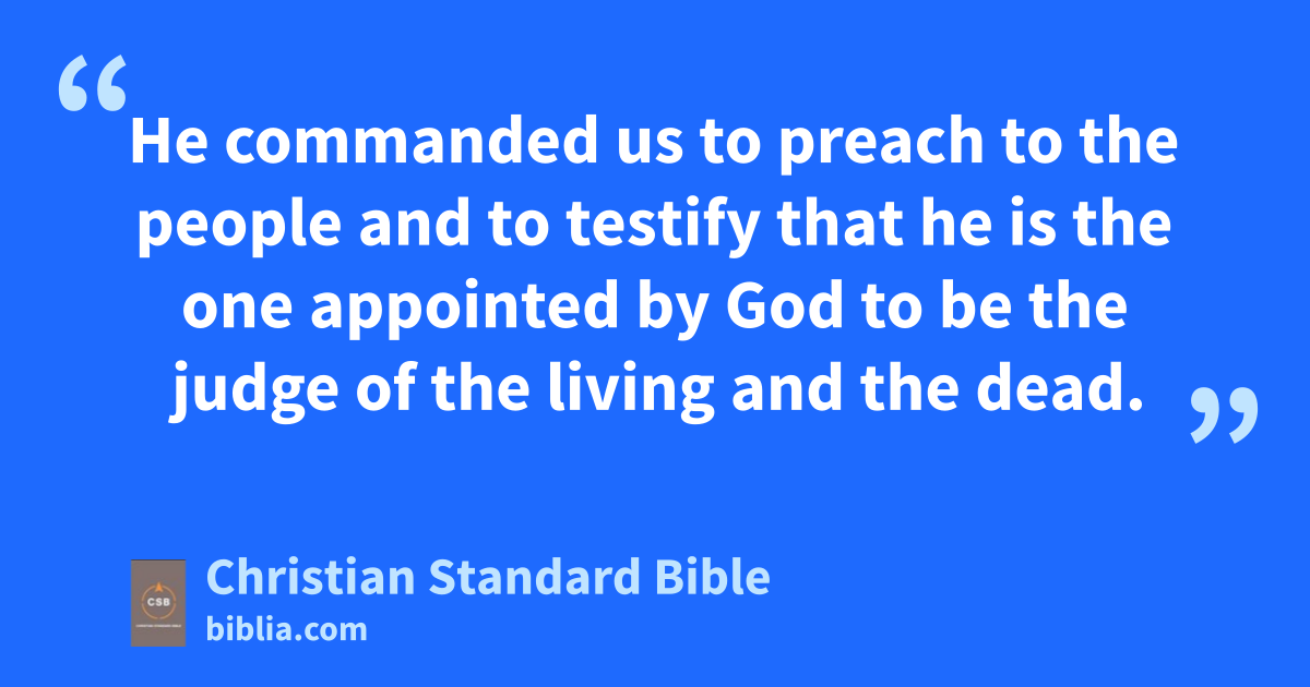 34 Peter began to speak: “Now I truly understand that God doesn’t show favoritism,i 35 but in every nation the person who fears him and does what is right is acceptable to him. 36 He sent the message to the Israelites, proclaiming the good news of peace through Jesus Christ—he is Lord of all.j 37 You know the events that took place throughout all Judea, beginning from Galilee after the baptism that John preached: 38 how God anointed Jesus of Nazareth with the Holy Spirit and with power, and how he went about doing good and healing all who were under the tyranny of the devil, because God was with him.k 39 We ourselves are witnesses of everything he did in both the Judean country and in Jerusalem, and yet they killed him by hanging him on a tree.l 40 God raised up this man on the third day and caused him to be seen, 41 not by all the people, but by us whom God appointed as witnesses, who ate and drank with him after he rose from the dead.m 42 He commanded us to preach to the people and to testify that he is the one appointed by God to be the judge of the living and the dead.n 43 All the prophets testifyo about him that through his namep everyone who believes in him receives forgiveness of sins.”q