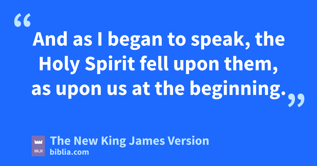 4 But Peter explained it to them din order from the beginning, saying: 5 e“I was in the city of Joppa praying; and in a trance I saw a vision, an object descending like a great sheet, let down from heaven by four corners; and it came to me. 6 When I observed it intently and considered, I saw four-footed animals of the earth, wild beasts, creeping things, and birds of the air. 7 And I heard a voice saying to me, ‘Rise, Peter; kill and eat.’ 8 But I said, ‘Not so, Lord! For nothing common or unclean has at any time entered my mouth.’ 9 But the voice answered me again from heaven, ‘What God has cleansed you must not call common.’ 10 Now this was done three times, and all were drawn up again into heaven. 11 At that very moment, three men stood before the house where I was, having been sent to me from Caesarea. 12 Then fthe Spirit told me to go with them, doubting nothing. Moreover gthese six brethren accompanied me, and we entered the man’s house. 13 hAnd he told us how he had seen an angel standing in his house, who said to him, ‘Send men to Joppa, and call for Simon whose surname is Peter, 14 who will tell you words by which you and all your household will be saved.’ 15 And as I began to speak, the Holy Spirit fell upon them, ias upon us at the beginning. 16 Then I remembered the word of the Lord, how He said, j‘John indeed baptized with water, but kyou shall be baptized with the Holy Spirit.’ 17 lIf therefore God gave them the same gift as He gave us when we believed on the Lord Jesus Christ, mwho was I that I could withstand God?”
